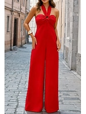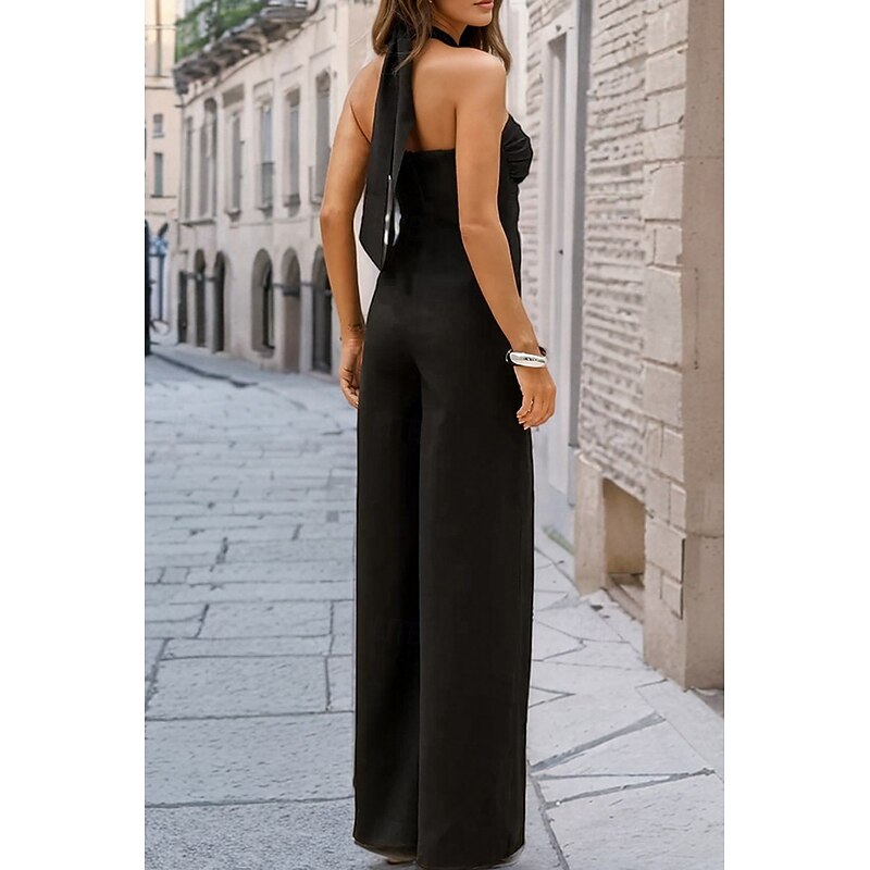 More information about Women's Normal Jumpsuit Elegant Solid Color Sleeveless Halter Neck Backless Party Regular Fit Black White Red Summer