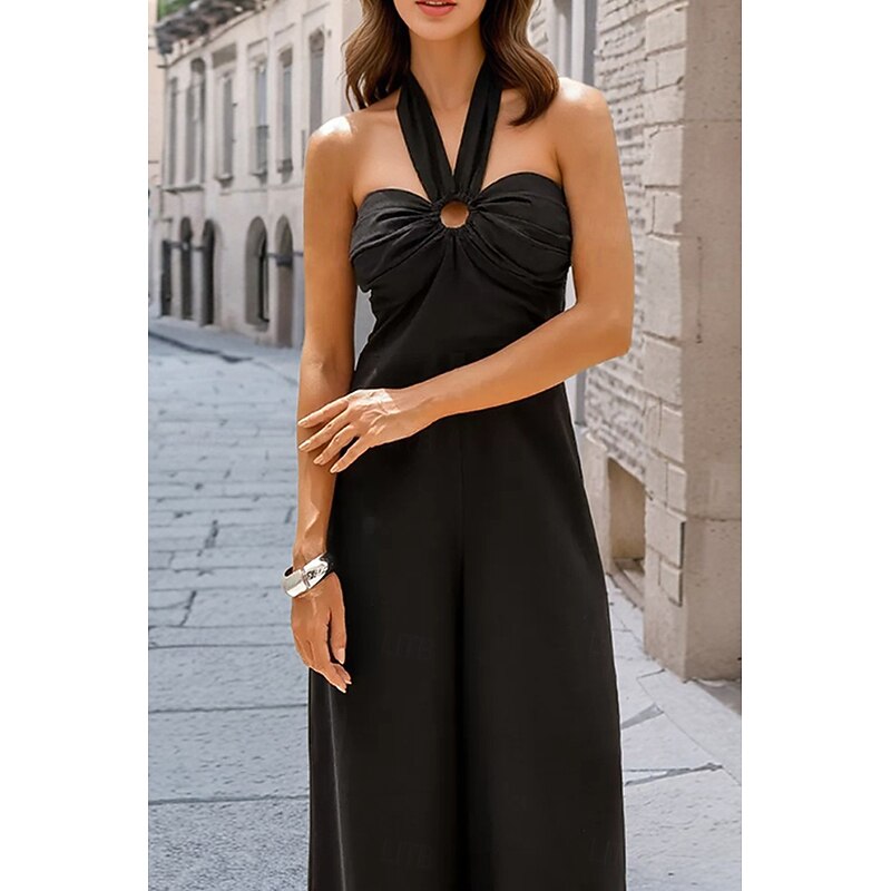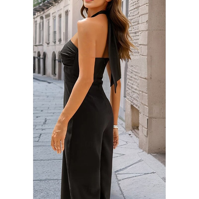 Women's Normal Jumpsuit Elegant Solid Color Sleeveless Halter Neck Backless Party Regular Fit Black White Red Summer 15