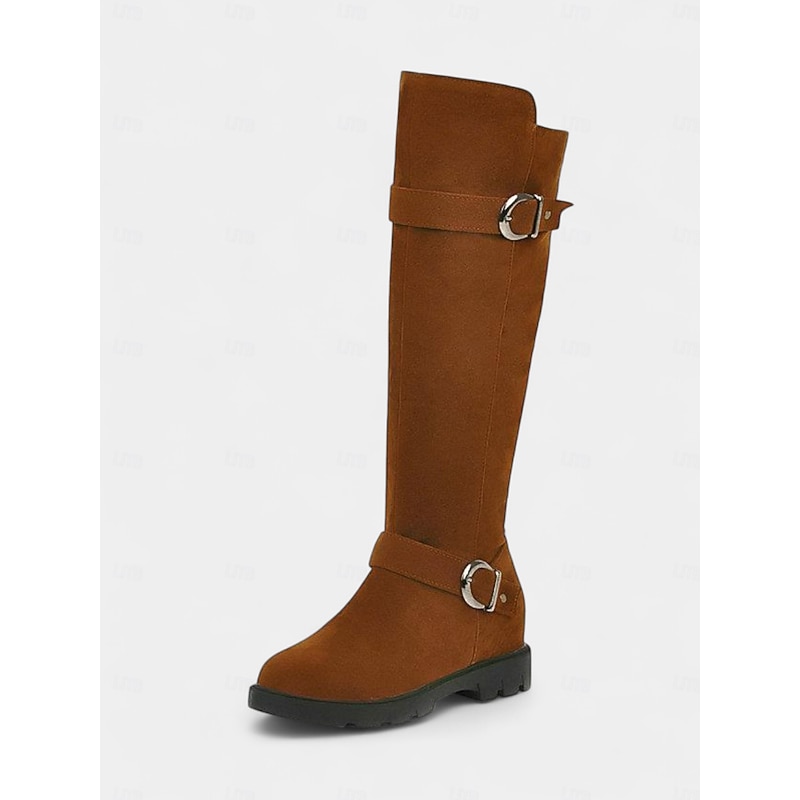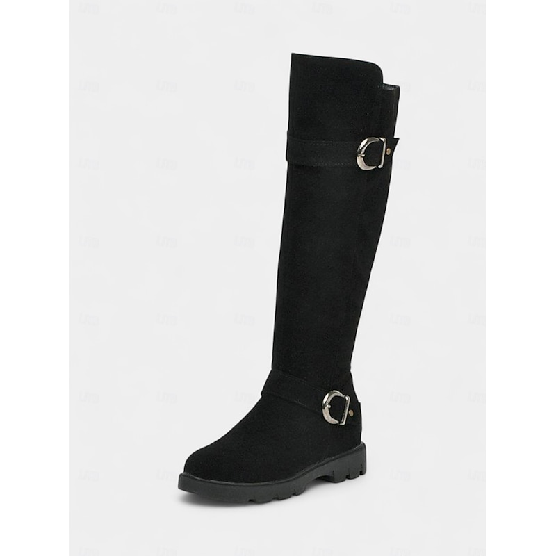 HOT ! Women's Boots Christmas Daily Knee High Boots Buckle Low Heel Round Toe Classic Casual Minimalism Faux Suede Zipper Almond Black Red