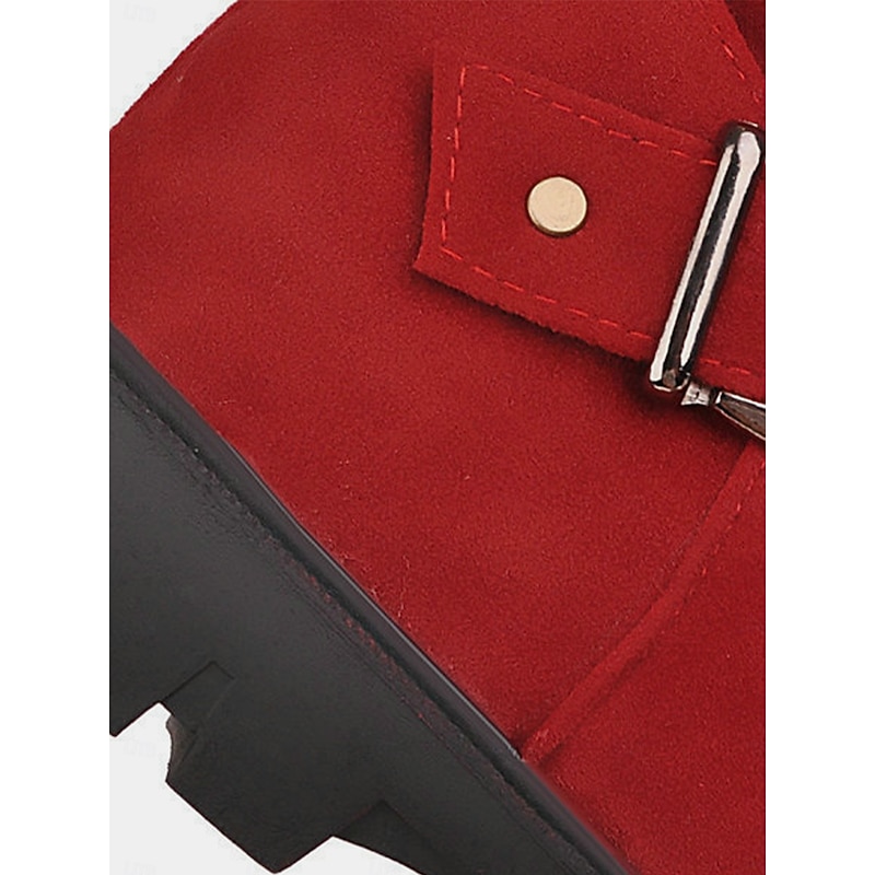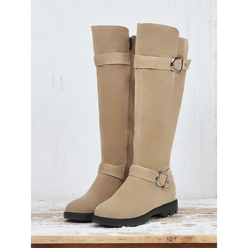 More information about Women's Boots Christmas Daily Knee High Boots Buckle Low Heel Round Toe Classic Casual Minimalism Faux Suede Zipper Almond Black Red