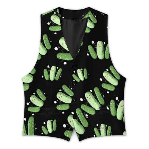 Cute Cucumber Pickle Novelty Men's Suit Vest Funny Formal Dress Vests Business Waistcoat 6