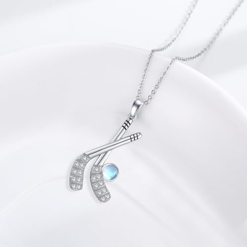 • Hockey Necklace Material: The hockey pendant is made of 925 sterling silver. Hypoallergenic, anti-tarnish, nickel free, won't make your skin turn green, red or itchy, sensitive skin can also wear.The moonstone's unique glow adds mystery to the necklace.