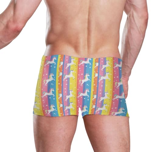 Rainbow Unicorn Cute Mens Swim Trunk Swimwear Bathing Suit Swim Brief Square Leg Board Short S B0404529