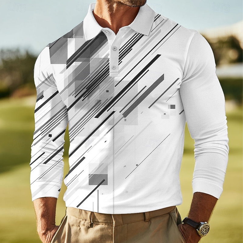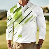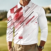 More information about Men's Geometric Abstract Polo Long Sleeve Polo Shirts Lapel Casual Outdoor Street Athleisure Daily Wear 3D Print Buttons Spring Fall Winter Red Blue Green
