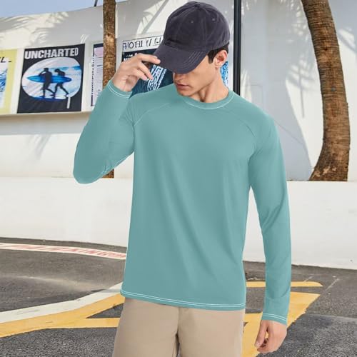 Cadet Blue Green Shirts Summer UPF 50+ Fishing Round Neck Long Sleeve Sun Protection UPF 50+ Hiking