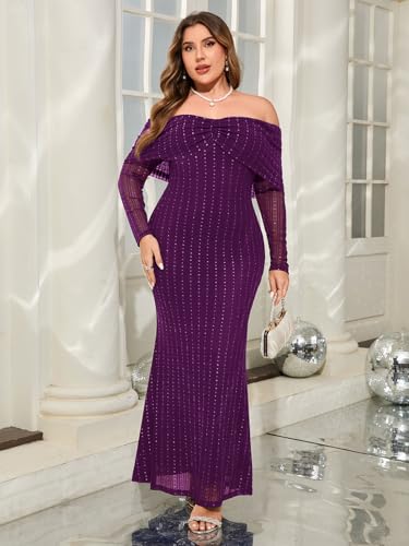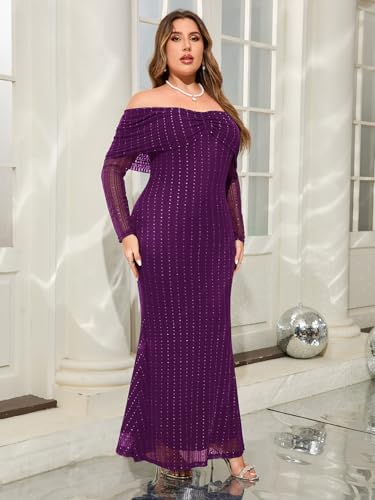 CYCLAMEN Plus Size Off The Shoulder Sparkly Dress Long Sleeve Mermaid Maxi Evening Gown Cocktail Party Wedding Guest 1