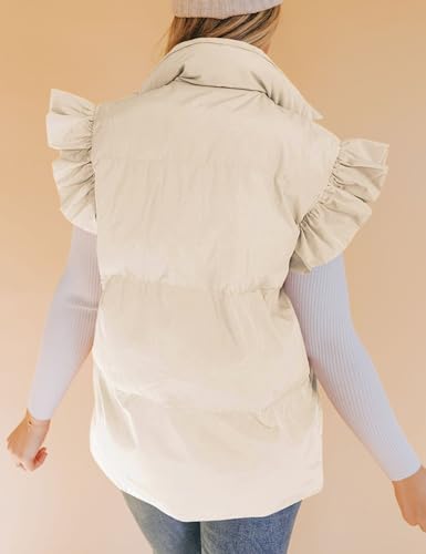 Womens Ruffle Sleeve Puffer Vest Padded Gilet Jacket Sleeveless Quilted Outwear Coat 4