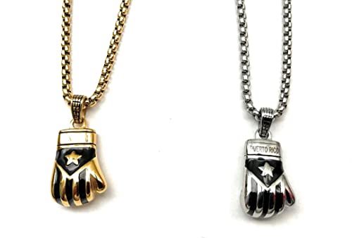 Papiichulo Boricua Power necklace Set, Silver/Black and Gold/Black 6