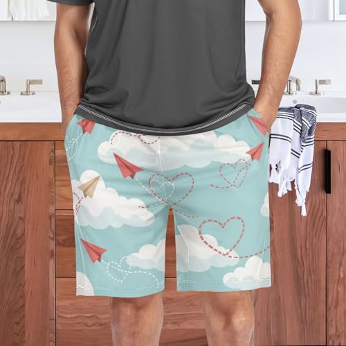 J JOYSAY Cartoon Airplane Heart Pajama Shorts Mens Lounge Sleep Shorts Straight-Fit Men Pajama Bottoms 6