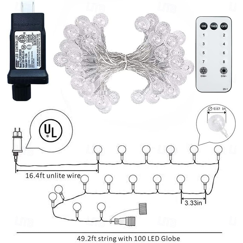 More information about 12m/20m/30m String Lights, LED Ball Fairy String 100-800 LEDs EL 5mm with 13-Keys Remote - Warm White/Cold White/Multicolor for Holiday & Christmas Patio Decorations