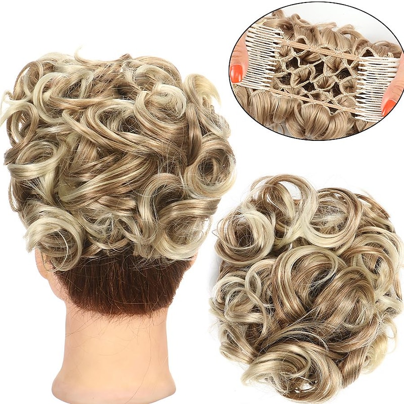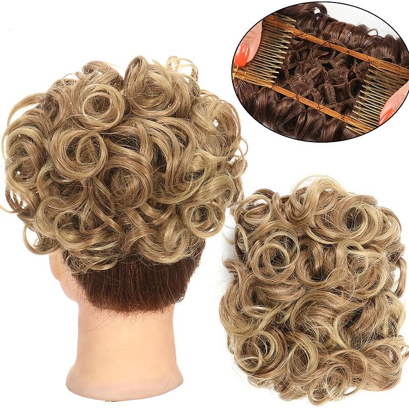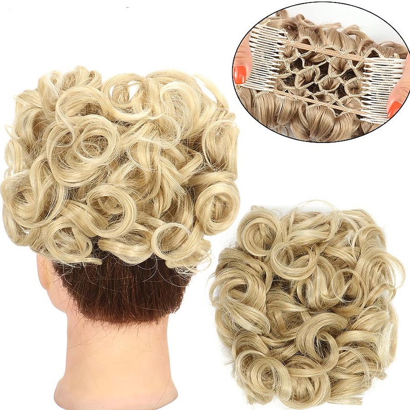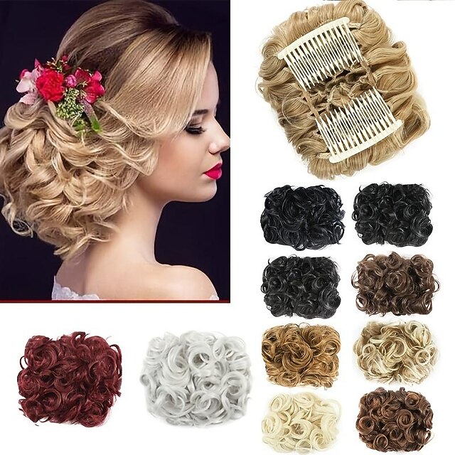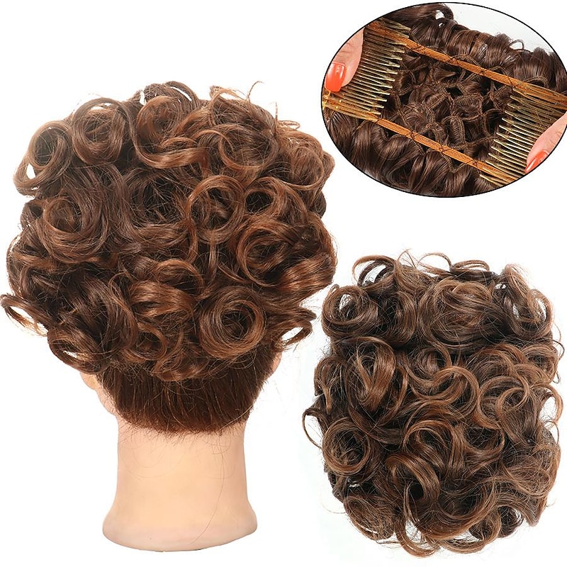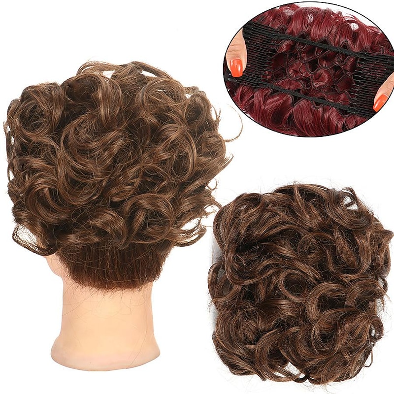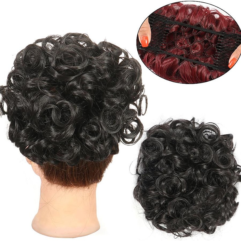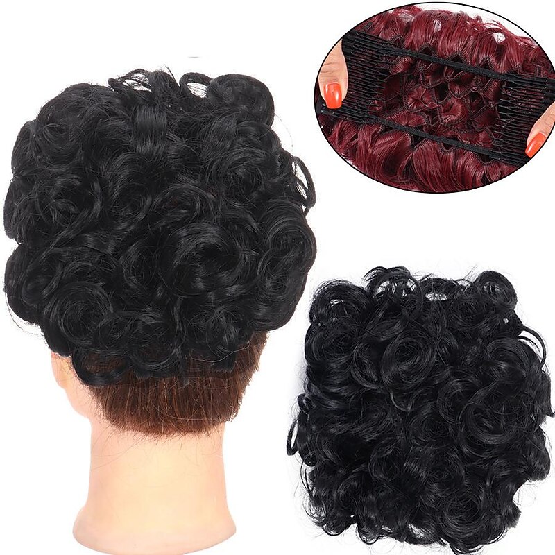 More information about Gorgeous Curly Hair Bun Updo - Synthetic Elastic Band Comb Clips Hair Extension for Women