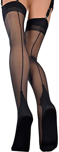 • 20 Denier Silky Back seamed Stockings, Pair with a garter or suspender belt (not included) for an ultra-sexy look.