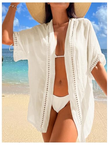 • Feature: Hollow Out Trim, Open Front, Dolman Sleeve, Thigh Length, Plain, Kimono Cover Ups for Women