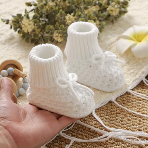Fabric type: KnitOrigin: ImportedSole material: FabricShaft height: AnkleComfortable Material:Newborn baby booties is made of premium core-spun yarn, breathable and lightweight bottom design fit for learning first walk.Baby's first steps start with good shoes.Worry-Free Design:Wide toe box design provides ample room for toes, preventing deformation and discomfort. Featuring reinforced stitching and wear-resistant soles, these shoes withstand both crawling and first walking stages. Versatile for indoor flooring use or outdoor first steps, offering all-in-one functionality for developing feet.Versatile Useage:Pure color sleek baby booties shoes are perfect for cribs, strollers, car seats, baby naps, yard, indoor and daycare.walking, crawling, sleeping, playing, going out and daily day wear, etc.Christmas,Photo Shoot, Playdates, First Birthday, Family Gathering Or Baby Shower Gifts.Easy to Put On and Off: The one-piece design knit collar only takes seconds to for you to slip them on, so babies can jump right into playtime. infant slip on shoes let them play in comfort while enjoying their time.Easy to Clean and Maintain:our baby socks shoes are machine washable and quick-drying.we highly recommend these booties to any new parent! they're a must-have for keeping baby's feet warm and protected.