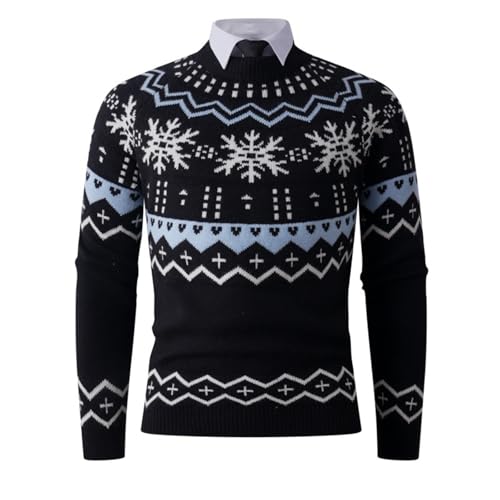 HOT ! Cambkatl Men's Stylish Snowflake Crewneck Sweaters - Stretch Casual Long Sleeve Pullover Knitted Cozy Sweater Tops