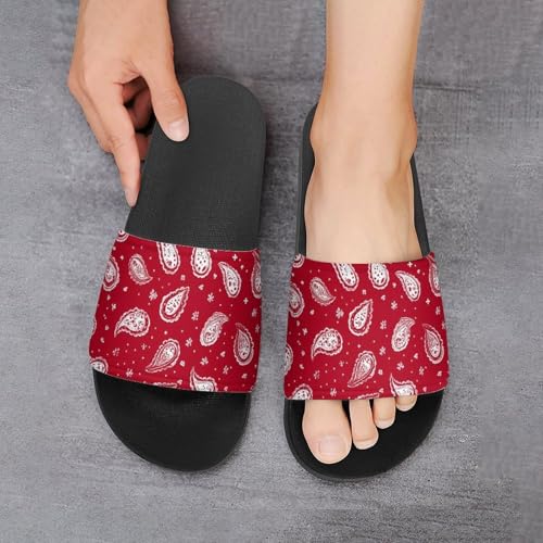 Red Bandana Paisley Summer Slide Sandals Shower Slipper Open Toe House Shoes for Men Women 5