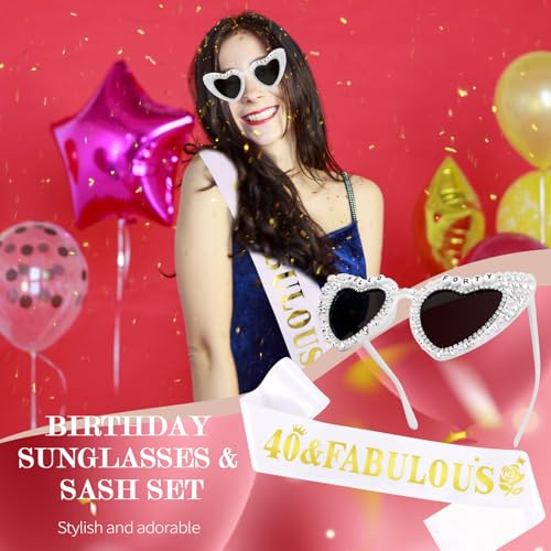 • Stylish Design: White heart-shaped sunglasses with shiny rhinestones and the words "Hello Forty", is a great addition to your birthday look. This is not only a fashion accessory, but also a timeless memory collection.