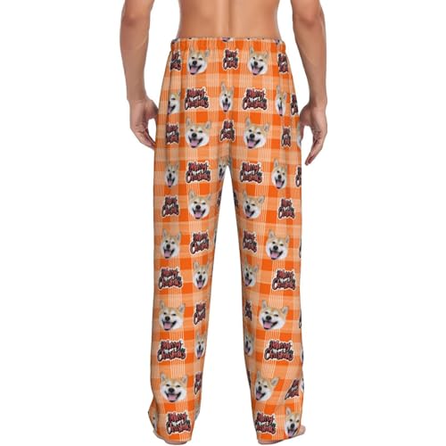 Custom Pajamas Pants Merry Christmas with Photo for Mens, Personalized Xmas Pj Bottoms Sleepwear Dog Pet Face Gifts for Women Husband 1