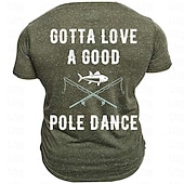 Highlights [Fabric:] Crafted from a cozy blend of polyester, this men’s t-shirt ensures a soft and breathable experience ideal for spring and summer. The micro-elastic quality of the fabric allows for comfortable wear, whether you're heading outdoors or just relaxing. [Fit:] Designed with a regular fit, this short-sleeve t-shirt promises both comfort and style, maintaining its shape through everyday wear. The crew neck design adds to the laid-back appeal, making it an easy choice for casual outfits. [Design Highlights:] Featuring a witty and eye-catching graphic print, this t-shirt showcases two crossed fishing poles and a whimsical fish under the amusing phrase GOTTA LOVE A GOOD POLE DANCE. The 3D print technique ensures the design stands out with vibrant detail and humor, perfectly catering to fishing enthusiasts and lovers of quirky fashion. [Occasions:] Suitable for a variety of occasions, this t-shirt complements street style and outdoor activities, whether you're heading on a holiday, engaging in sports, or simply going out for the day. Its combination of comfort and humor makes it a versatile addition to any men's wardrobe. [Size Range:] Available in a variety of sizes—S, M, L, XL, 2XL, and 3XL—this t-shirt offers a tailored fit for a wide range of body types, ensuring everyone can enjoy its exclusive style and comfort. Perfect for everyday use. excellent materials and excellent craftsmanship ensure long-lasting durability.