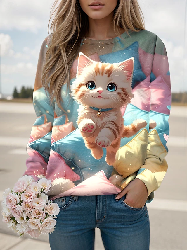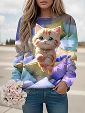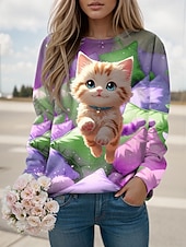 More information about Women's Pullover Sweatshirt Graphic Animal Cat Casual Long Sleeve Crew Neck Regular Tops Street Casual Holiday Print Pink Blue Purple Green Spring Fall Winter