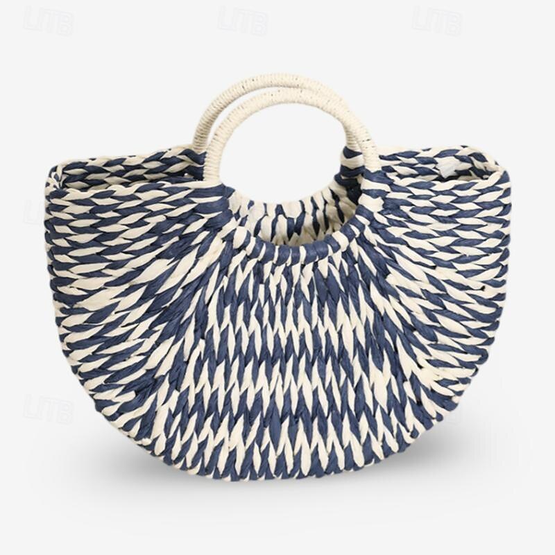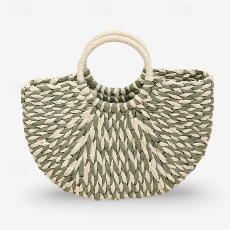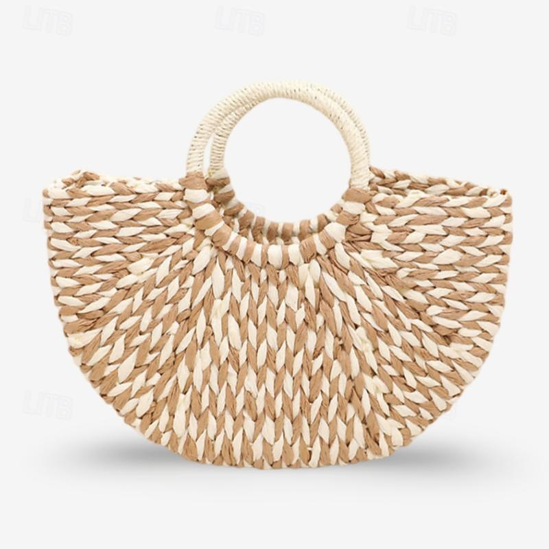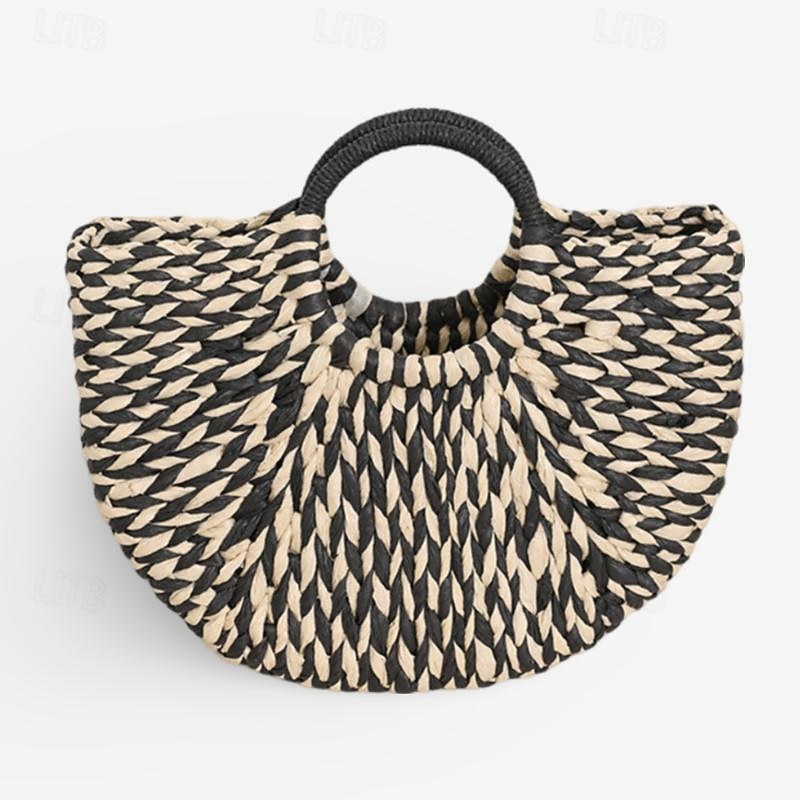 Boho Chic Woven Straw Handbag - Women's Natural Fiber Circle Beach Tote 12