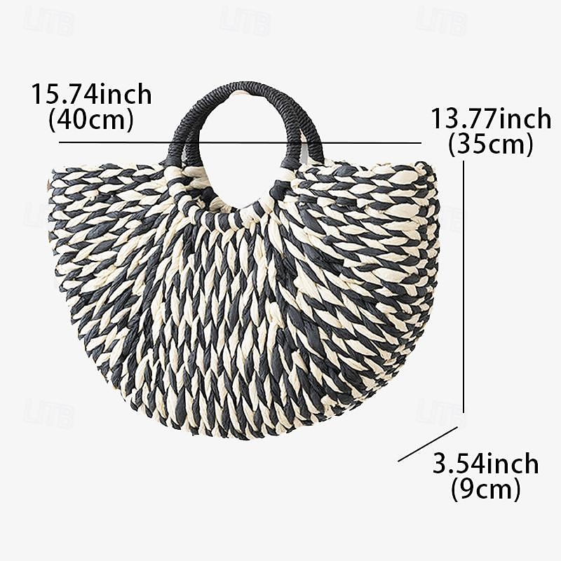 Boho Chic Woven Straw Handbag - Women's Natural Fiber Circle Beach Tote 15