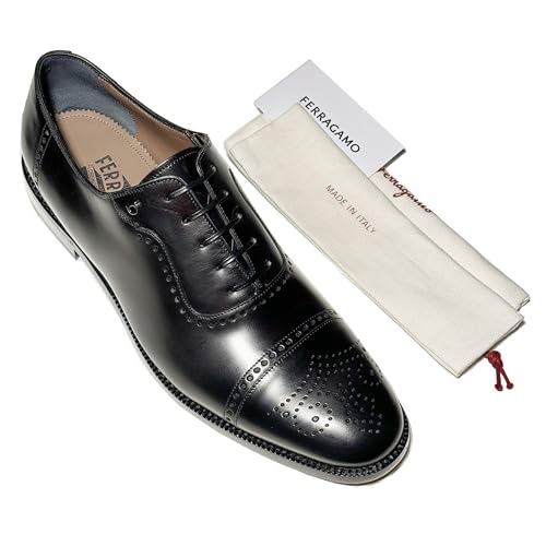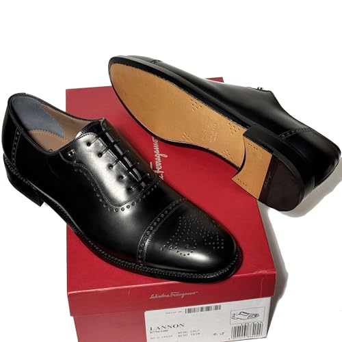 LANNON Black Leather Cap Toe Brogue Gancini Oxford Men's Dress Shoes, Nero 6