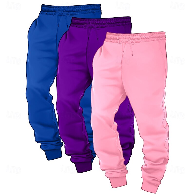 Men's Sweatpants Joggers Fleece Pants Winter Pants Trousers Drawstring Elastic Waist Solid Color Comfort Warm Full Length Outdoor Casual Daily Ethnic Style Classic Style Light Grey+Blue+Black 6