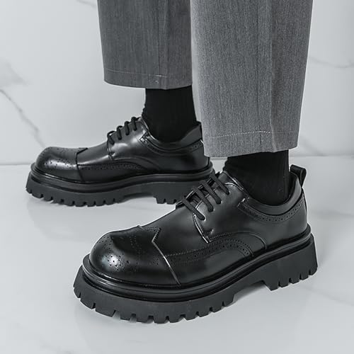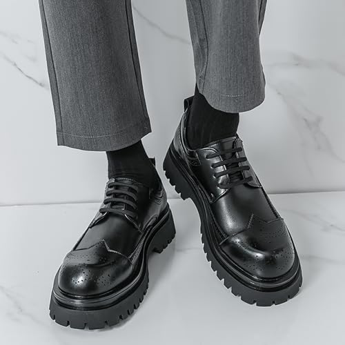 Men's Leather Wingtip Brogue Platform Oxfords Fashion Round Toe Lace Up Lug Sole Derby Shoes Comfort Business Formal Dress Shoes 6