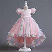More information about Kids Girls' Cosplay Dress Party Dress Solid Color Rainbow Short Sleeve Performance Christmas Mesh Backless Patchwork Beautiful Sweet Polyester Maxi Party Dress Swing Dress Tulle Dress Winter 4-12