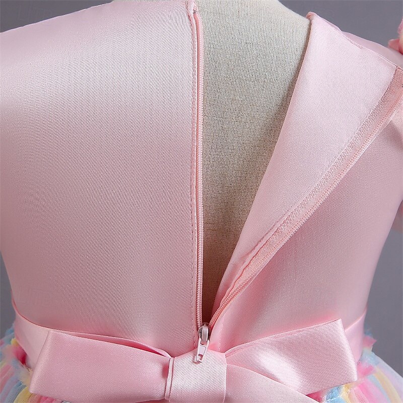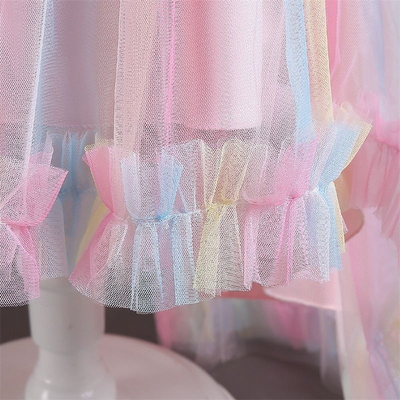 Kids Girls' Cosplay Dress Party Dress Solid Color Rainbow Short Sleeve Performance Christmas Mesh Backless Patchwork Beautiful Sweet Polyester Maxi Party Dress Swing Dress Tulle Dress Winter 4-12 3
