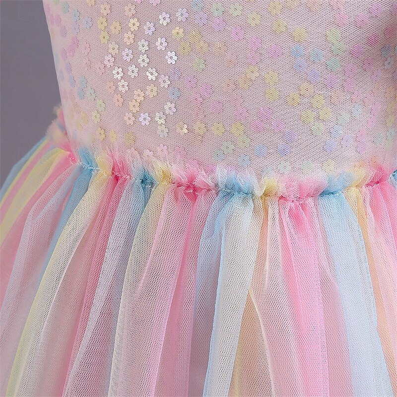 Kids Girls' Cosplay Dress Party Dress Solid Color Rainbow Short Sleeve Performance Christmas Mesh Backless Patchwork Beautiful Sweet Polyester Maxi Party Dress Swing Dress Tulle Dress Winter 4-12 9