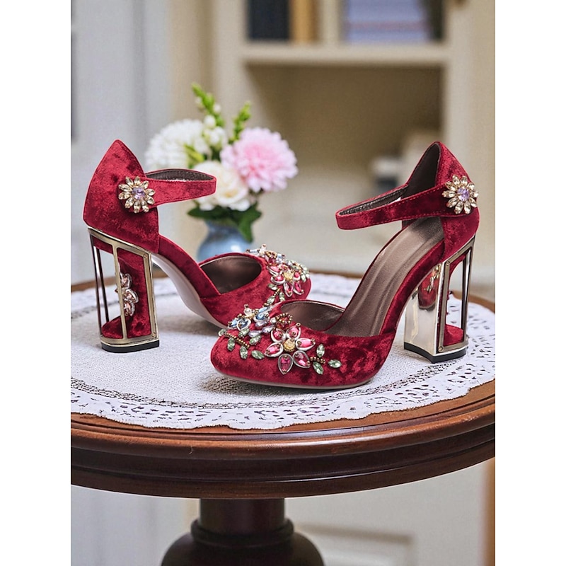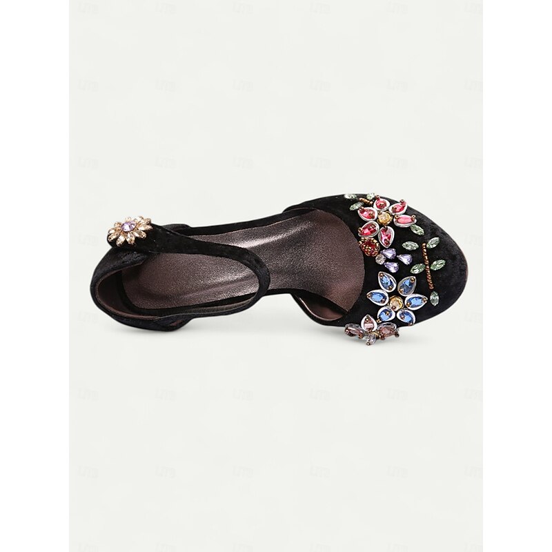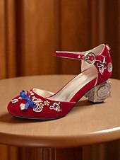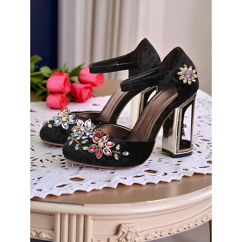 More information about Women's Light Blue Chunky Heel Dress Shoes with Gemstone Floral Embellishments - Elegant Vintage-Inspired Ankle Strap Pumps for Ladies, Ideal for Weddings, Garden Parties, and Medieval Fantasy-Themed