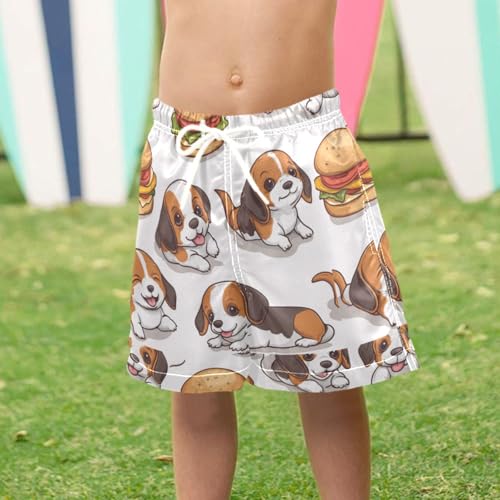 Pigsaly Boys Swim Trunks Hamburger Funny Puppy Beagle Dog Boys Board Shorts Swimsuit Swimwear Summer Bathing Suit 4T Multicolor 3