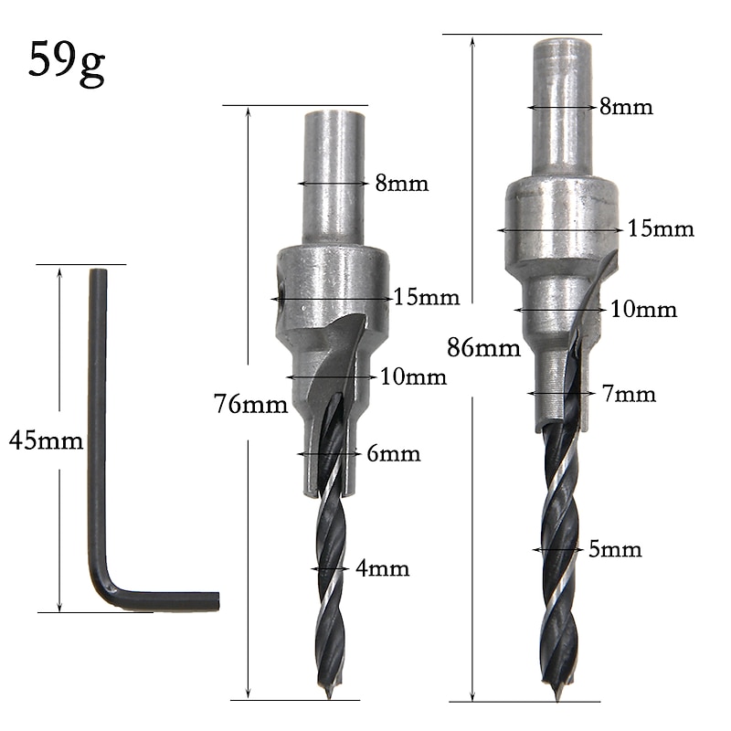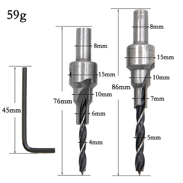 2Pcs/Set Drill Bit Set Countersink 2 Flute 3Steps 4mm/6mm 5mm/7mm Power Tools For Wood Reamer Woodworking Chamfer Kits