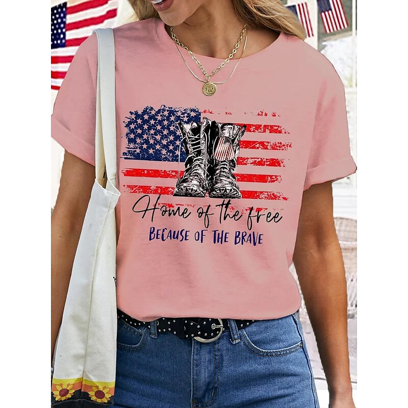 HOT ! Women's Patriotic T Shirt American Flag National Flag Fashion Basic Short Sleeve Crew Neck Regular Tops Casual Weekend Print White Pink Summer