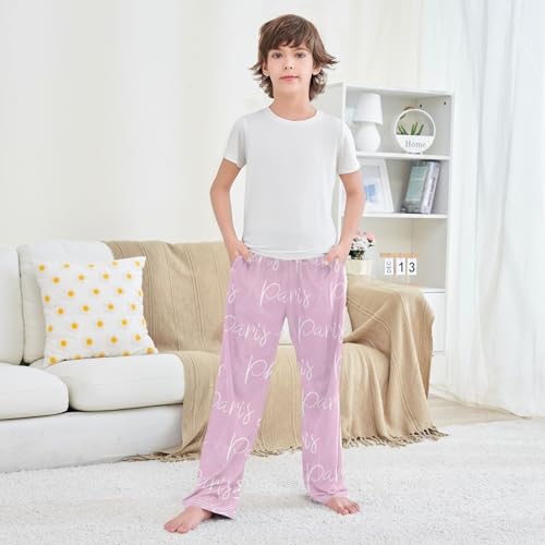 HOT ! Paris Print Boys Long Pants Soft Trousers Elastic Waist Kids Lounge Bottoms with Pockets S-XL