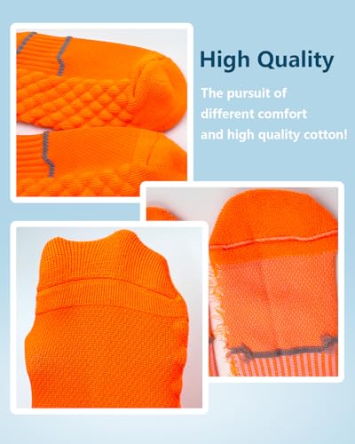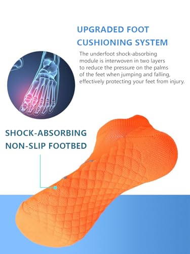 Mens Orange Ankle Socks 5 Pairs Athletic Running Socks Towel Bottom Shock Absorbing Breathable Low Cut Socks 8-13