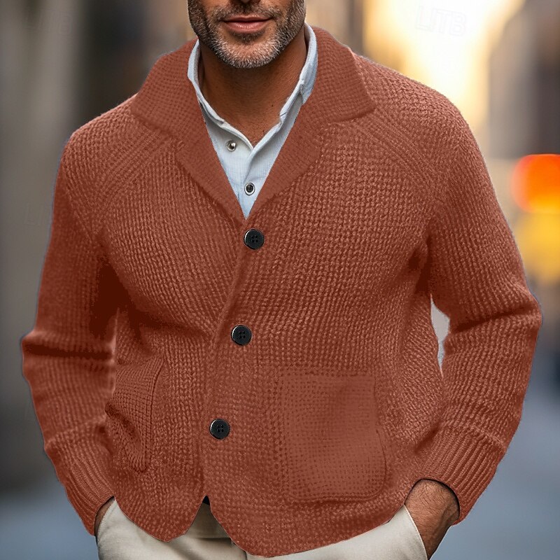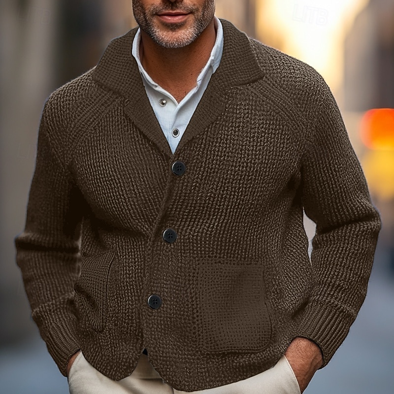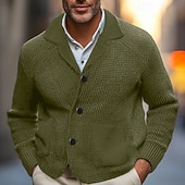 sought-after ! Men's Sweater Dress Sweater Cardigan Sweater Waffle Knit Cropped Knitted Stand Collar Clothing Apparel Fall Winter Red Brown Black XS S M