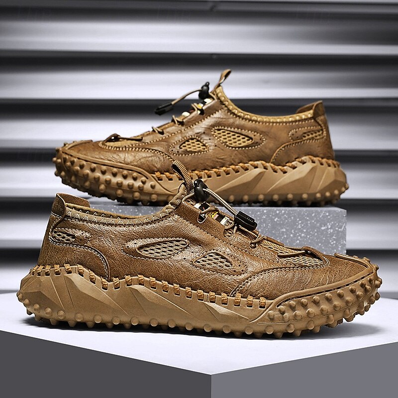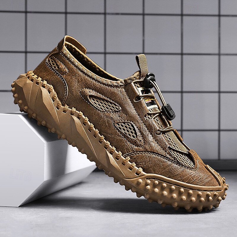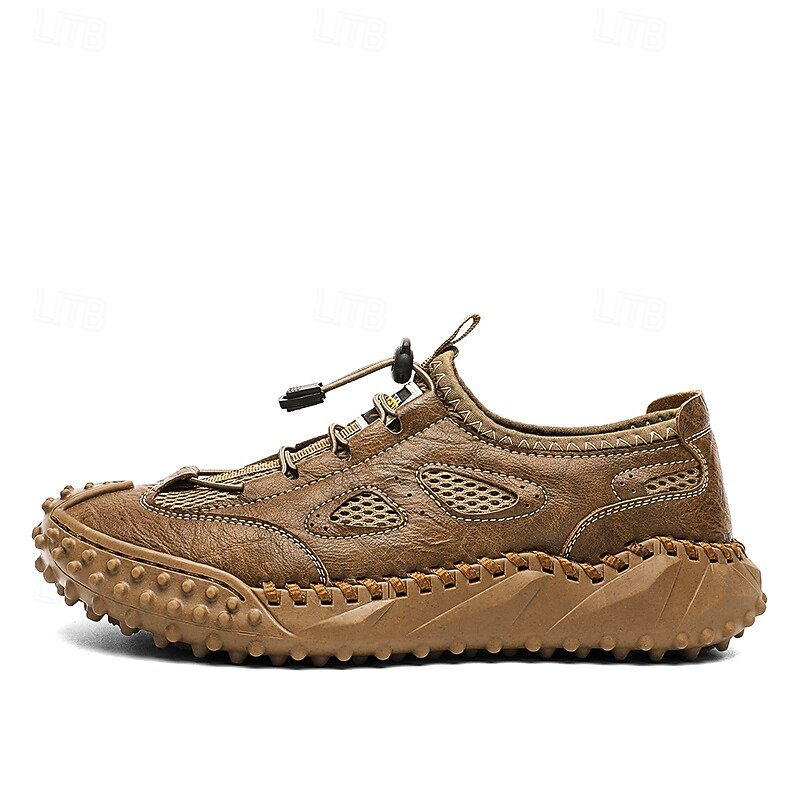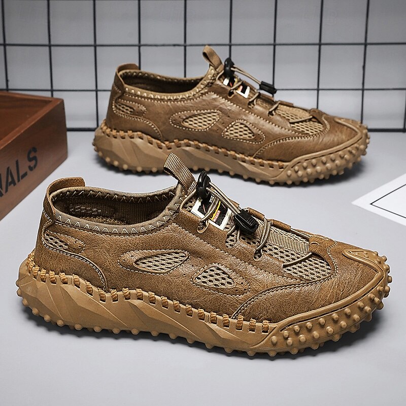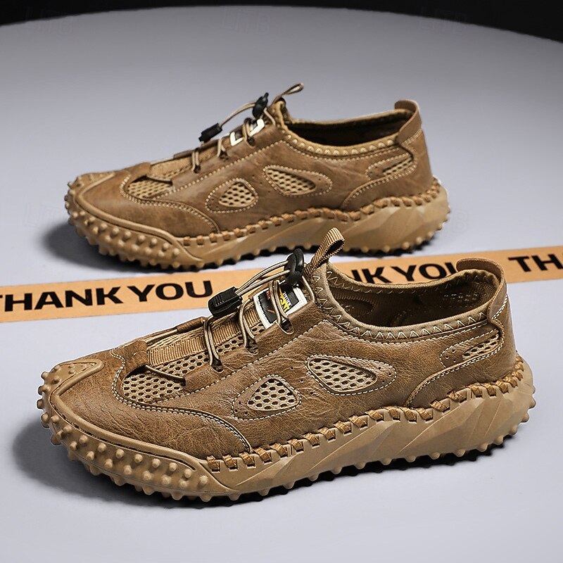 Men's Tan Slip-on Casual Sandals with Elastic Laces and Comfortable Footbed for Beach Trips, Vacations and Relaxed Outdoor Activities 28
