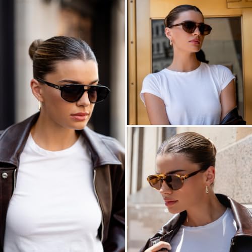 HOT ! WMP Eyewear - Women’s Retro Double Bridge Aviator Sunglasses with Polarized Lenses, Lightweight Frame, & Full UV Protection