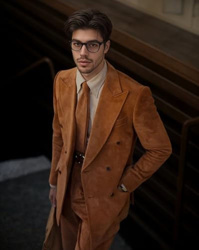More information about Suede Suits for Men with Tie 3 Piece Double Breasted Mens Suit Formal Peak Lapel Mens Suits for Wedding Grooms