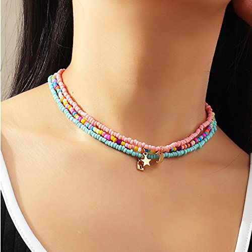 Handmade Multilayered Rainbow Colorful Beads Link Chain Moon Star Butterfly Pendant Choker Necklace Friendship Creative Beach Costume Jewelry for Women 1