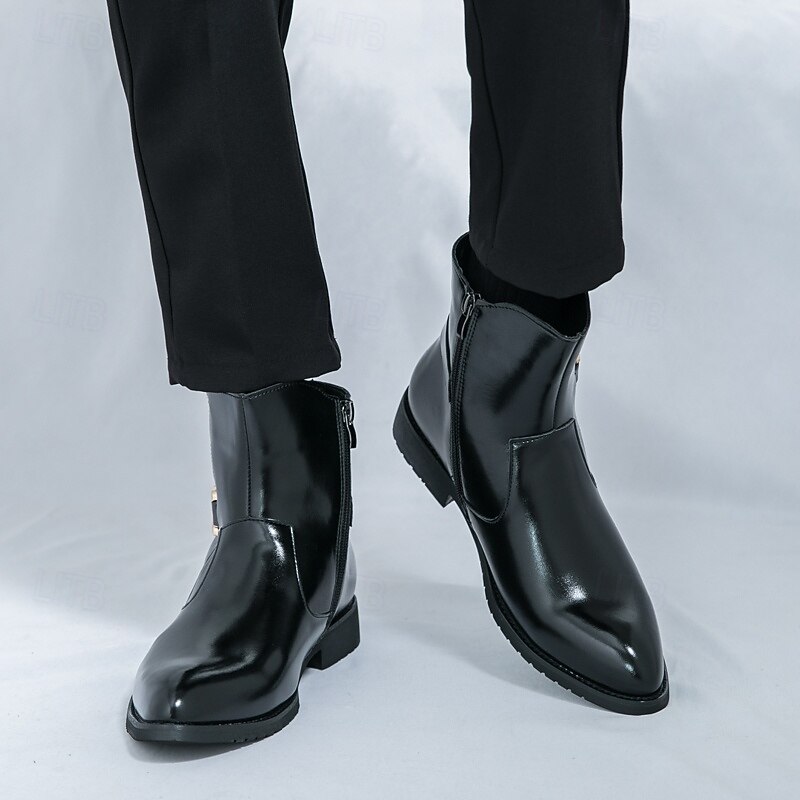 More information about Men's Black Faux Leather Ankle Boots with Lace-Up Design, Chic and Comfortable for Business Meetings, Dressy Casual and Nightlife