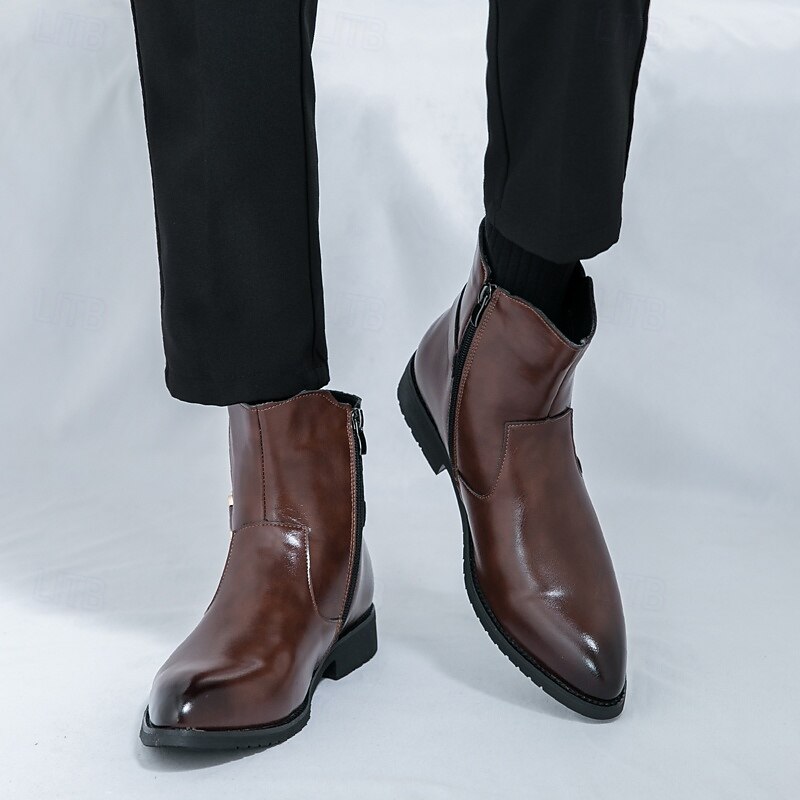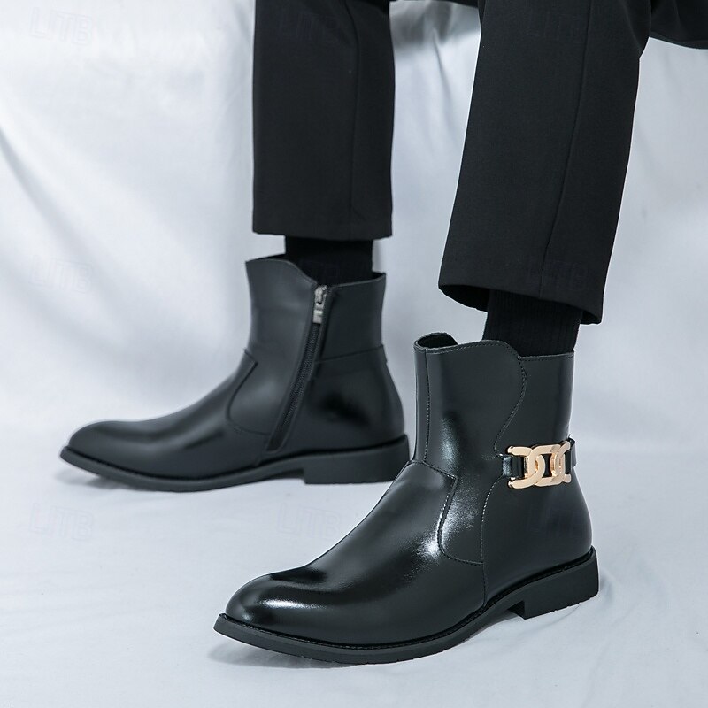 HOT ! Men's Black Faux Leather Ankle Boots with Lace-Up Design, Chic and Comfortable for Business Meetings, Dressy Casual and Nightlife