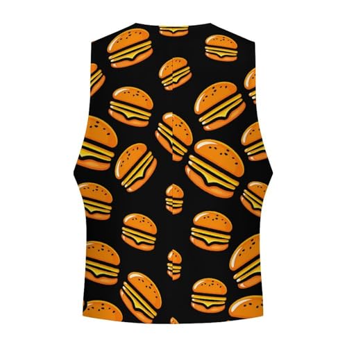 Hamburger Suit Vest for Men Waistcoat Dressy V Neck Button Down Sleeveless Business Jacket Coat 1