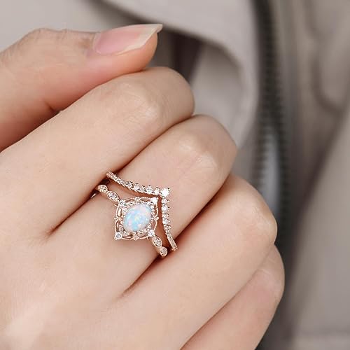 Vintage Opal Bridal Ring Set Art Deco 0.75ct Oval Opal Engagement Ring Set for Women S925 10k 14k 18k Rose Gold Moissanite Wedding Ring Set 2Pcs Anniversary Ring Gift for Her Free Engraved 6