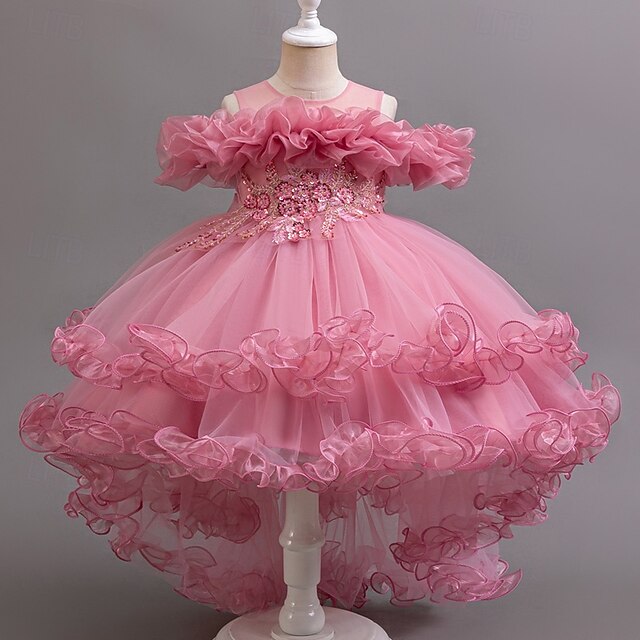 Flower Girl Dress Girls' Formal Dress Princess Dress Party Dress Wedding Special Occasion Adorable Sweet Ruched Zipper Solid Color Short Sleeve Crew Neck White Champagne 4-13 Years 16