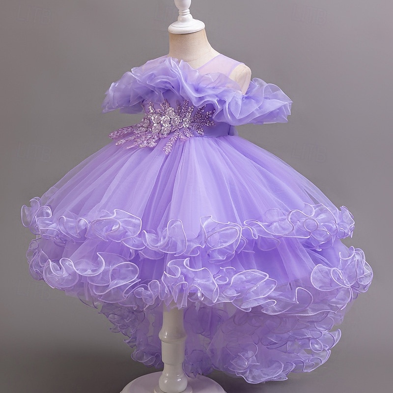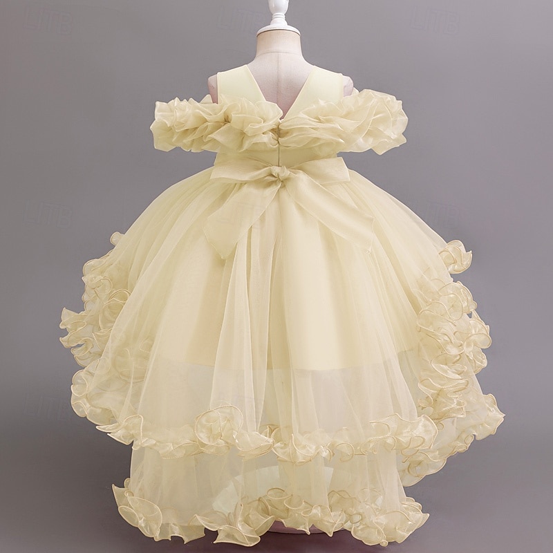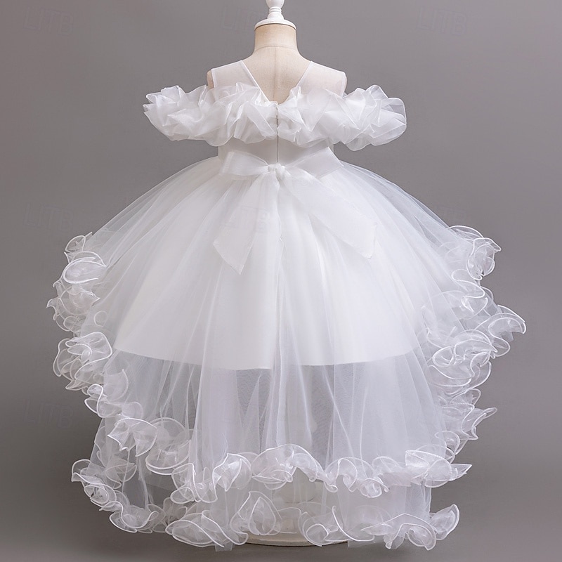 More information about Flower Girl Dress Girls' Formal Dress Princess Dress Party Dress Wedding Special Occasion Adorable Sweet Ruched Zipper Solid Color Short Sleeve Crew Neck White Champagne 4-13 Years
