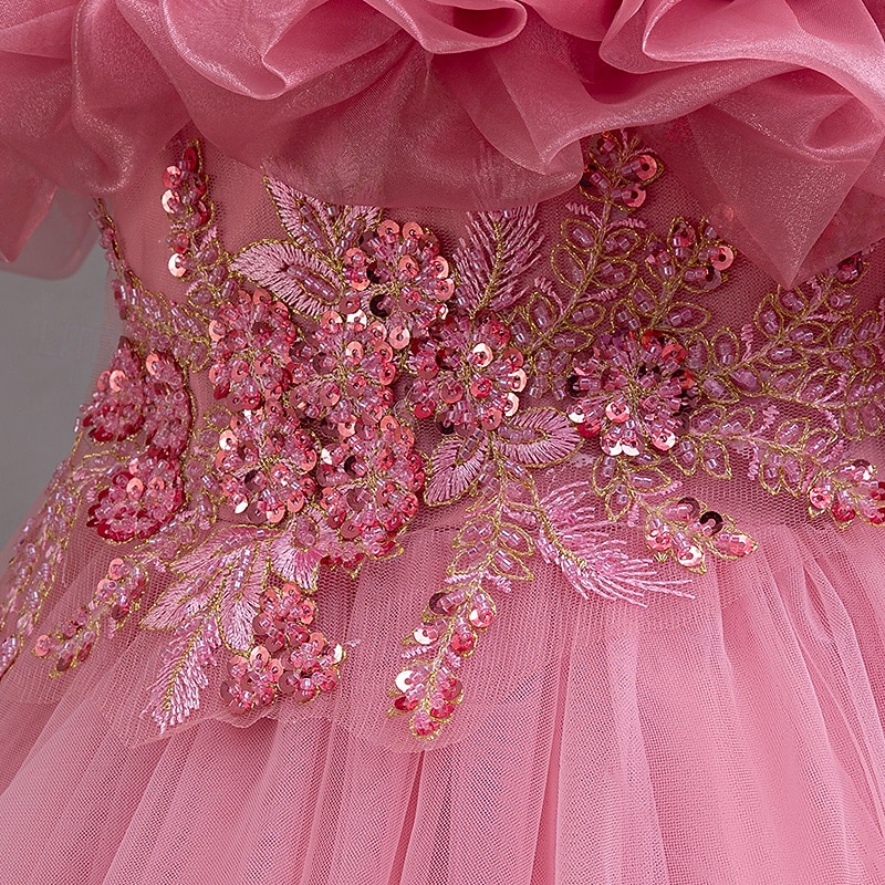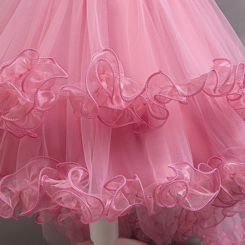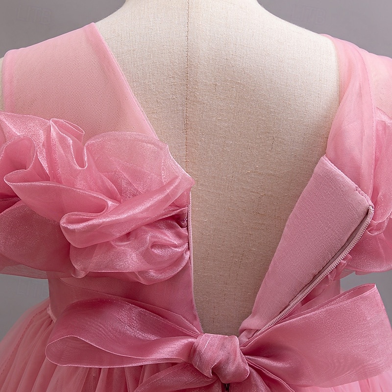 Flower Girl Dress Girls' Formal Dress Princess Dress Party Dress Wedding Special Occasion Adorable Sweet Ruched Zipper Solid Color Short Sleeve Crew Neck White Champagne 4-13 Years 9